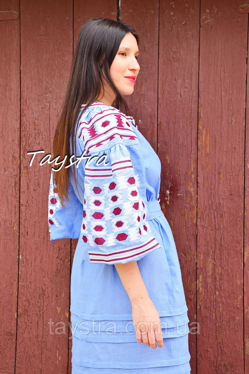 Вишите плаття бохо вишиванка льон етно стиль бохо шик, вишийте плаття вишиванка плаття бохо блакитне плаття